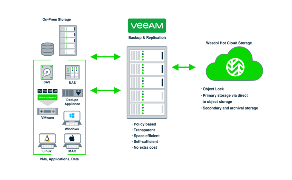 Backup Direct to Object Storage: Veeam allows you to create backup jobs that can send data directly to Wasabi without the need to have a local copy.