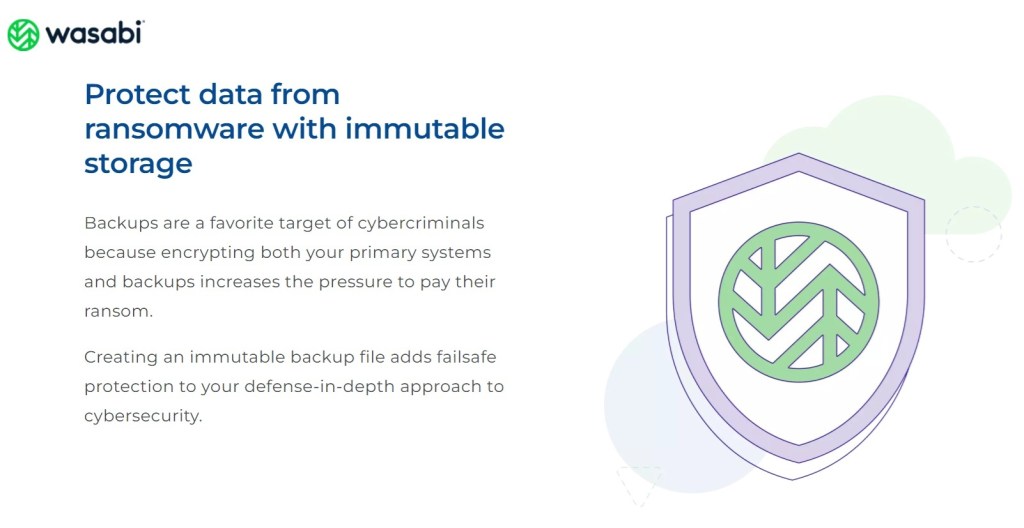 We all know that ransomware attacks are increasing in numbers and complexity targeting organisations backups to prevent them from restoring their data without paying a ransom. This is where Wasabi’s immutability feature ensures that once your backups are stored as immutable, it cannot be changed, deleted or modified by anyone, even with administrator access, not even Wasabi can change or delete your backups. In the event of a ransomware attack, you are confident your backup data remains intact.