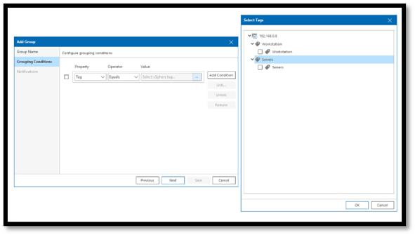 - Dynamic grouping across infrastructure boundaries such as clusters, folders, and Datastores