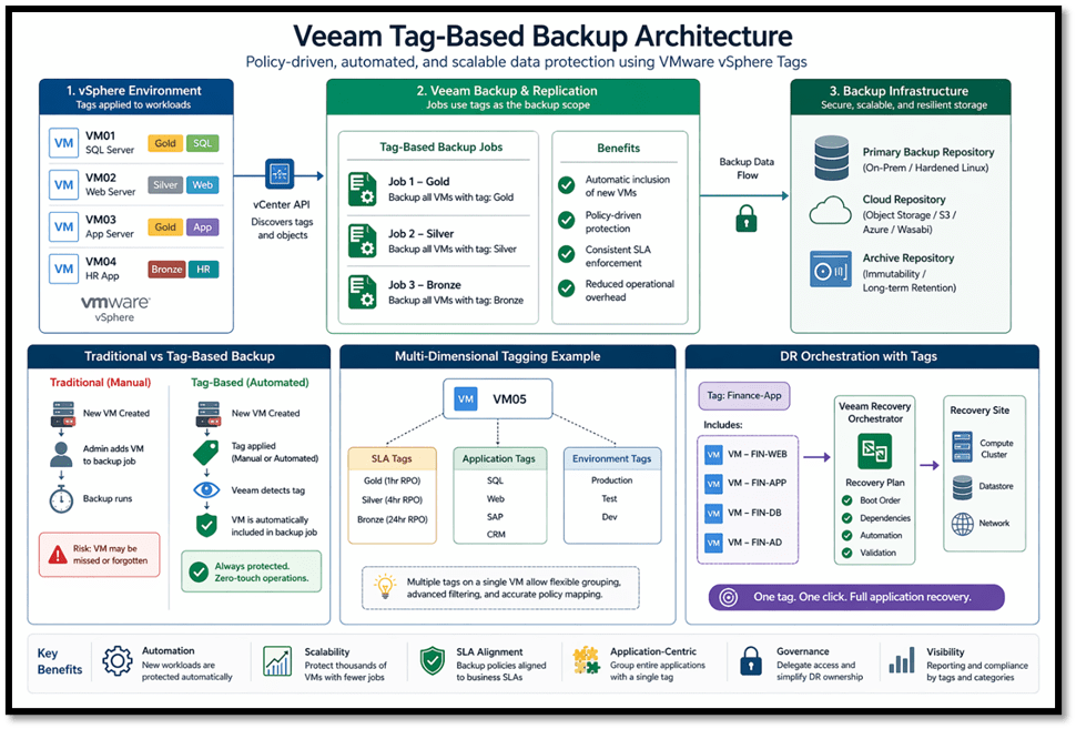 Using tags in Veeam transforms backup from a manual, VM-centric process into an automated, policy-driven framework.